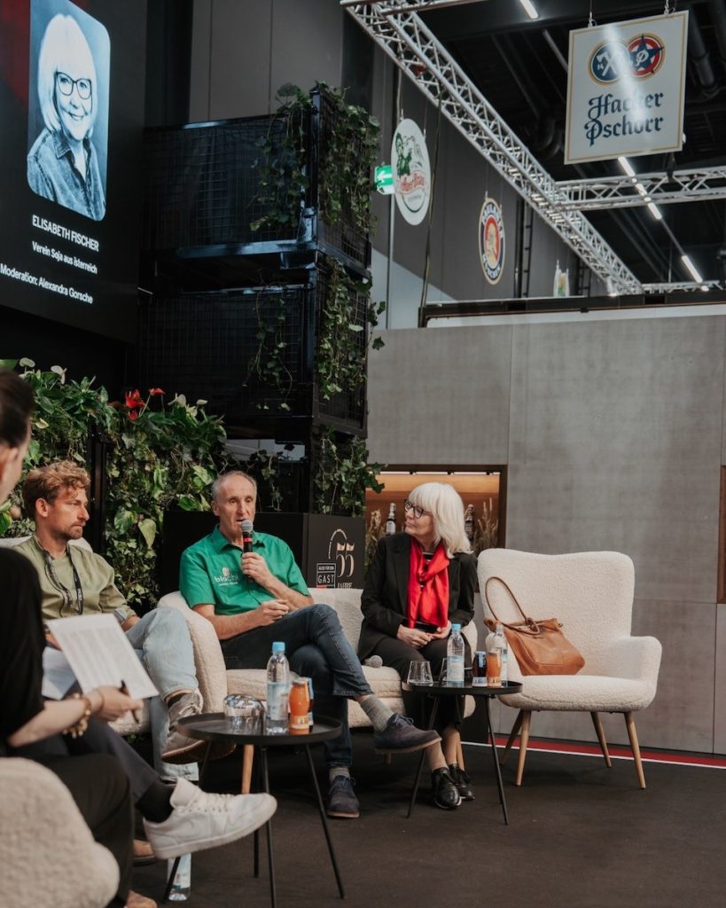 „Wenig verarbeitete österreichische Sojaprodukte gehören zu einer Küche mit Zukunft“ erklärte Elisabeth Fischer in der Diskussionsrunde „Plant food oder Fake Food“ auf der Messe „Alles für den Gast“ in Salzburg. „In unseren Workshops können Köchinnen und Köche schon heute bewährte, gastrogeeignete Rezepte mit Tofu, Tempeh und Texturaten kennenlernen und die Erfahrung machen, mit fermentierten Sojaprodukten wie Miso und Sojasoße kommt Umami, der köstliche Geschmack ganz natürlich und rein pflanzlich ins Essen.