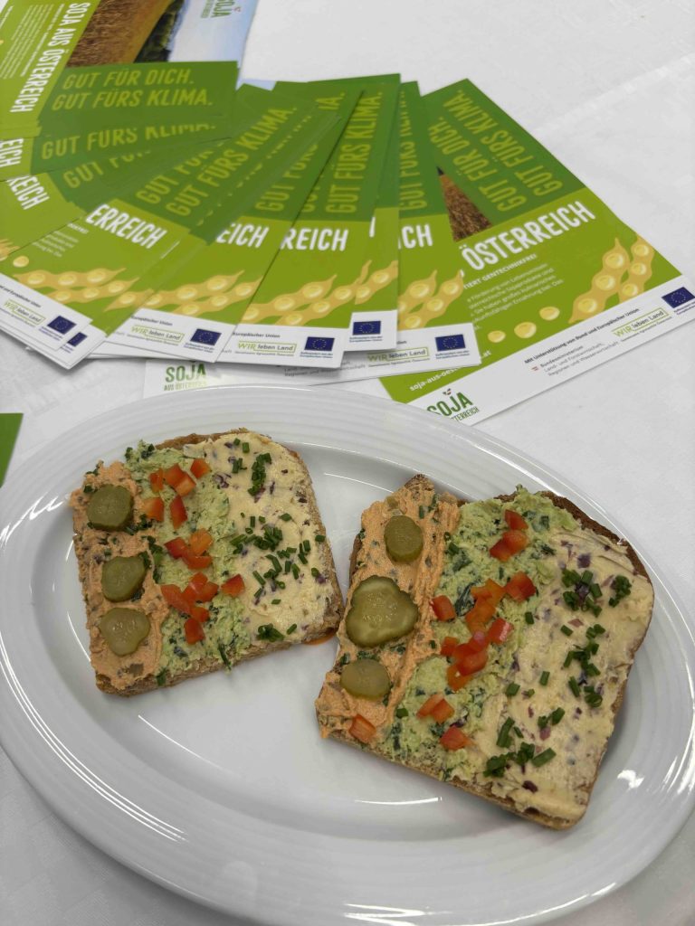 Wie gewohnt stand nicht nur Wissenswertes zu Sojalebensmitteln und ihren Produzenten im Mittelpunkt, sondern auch der Genuss. Elisabeth Fischer hatte wieder ihre beliebten Aufstriche zubereitet: Edamame-Kräuter, Räuchertofu-Mandel, Tofu-Liptauer sowie eine Miso-Zitronen-Butter mit Dulse (Rotalge). Und wir freuen uns sehr, dass unsere Häppchen damit so gut ankamen.