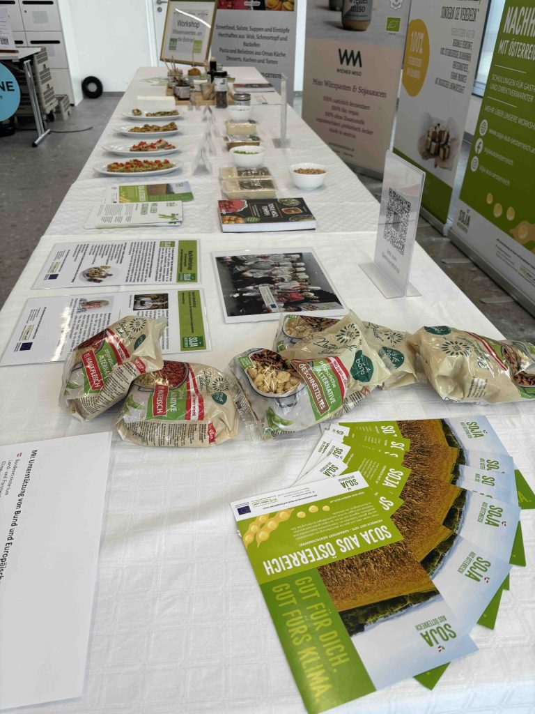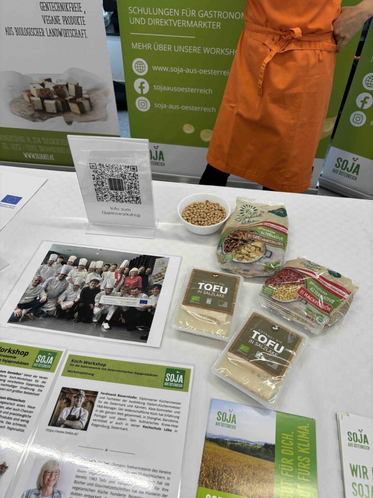 Der Verein Soja aus Österreich war mit einem großen Stand dabei. Wir informierten die FachbesucherInnen über die Vielfalt österreichische Sojalebensmittel und ihre Eignung für die Gastronomie.