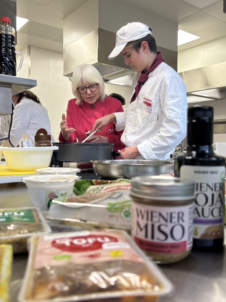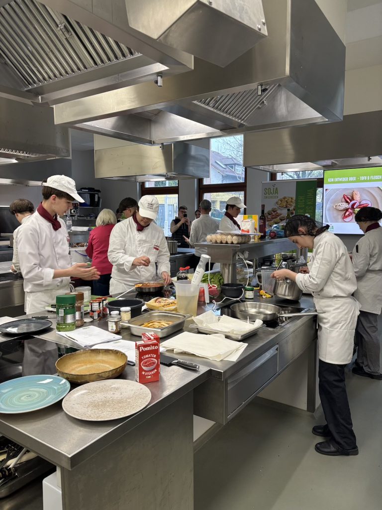 „Vegan und vegetarisch genießen mit österreichischen Sojaprodukten“ – wir freuen uns, dass wir in unserem Workshop am 26.03.2026 an der Schule für Tourismus und Wirtschaft in der Bergheidengasse, 1140 Wien das kulinarische Potential österreichischer Sojaprodukte vorstellen konnten. Wünschen sich doch immer mehr Gäste vegane und vegetarische Speisen, ein Trend, auf den sich zukünftige Fachkräfte vorbereiten müssen.